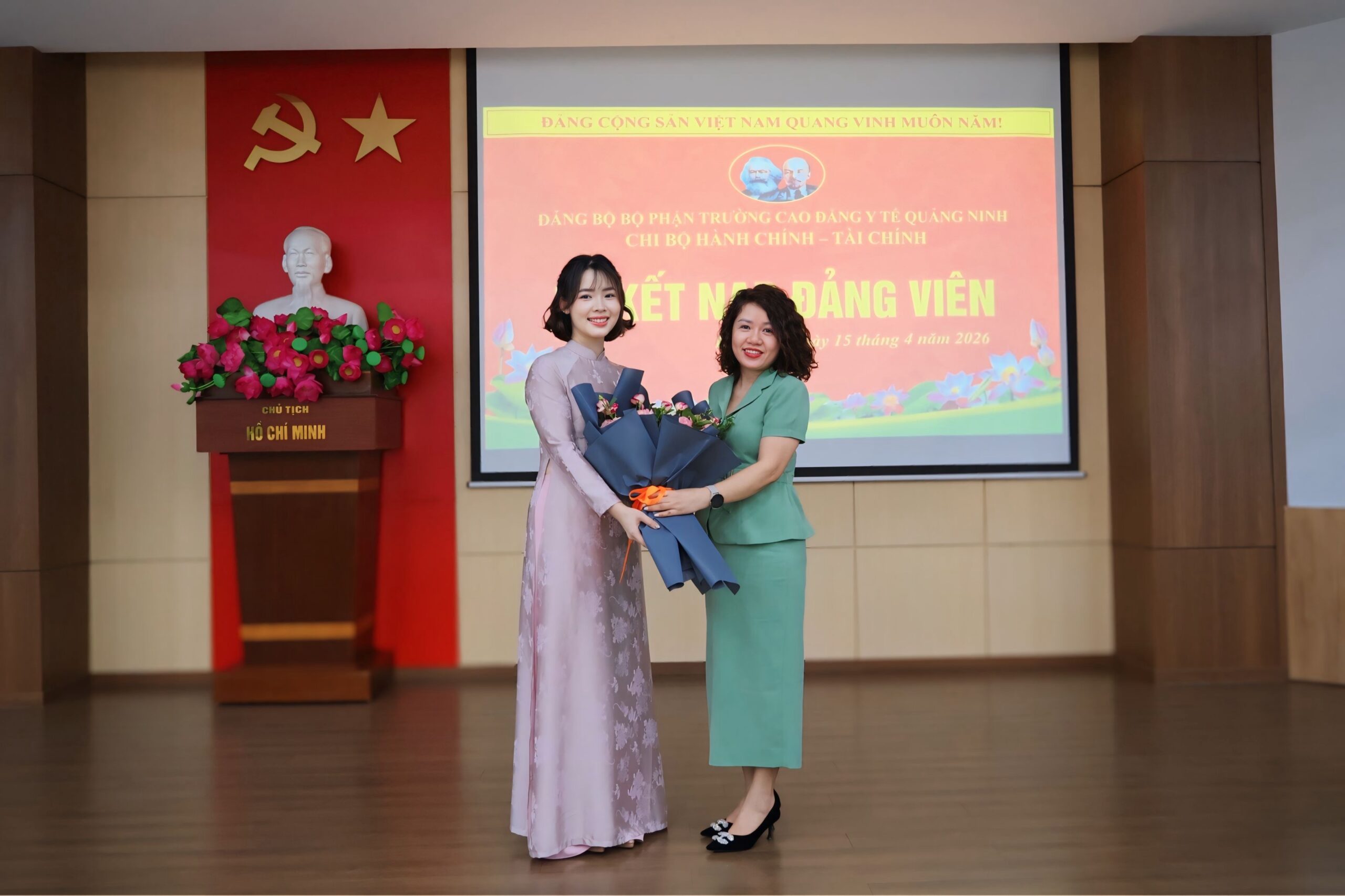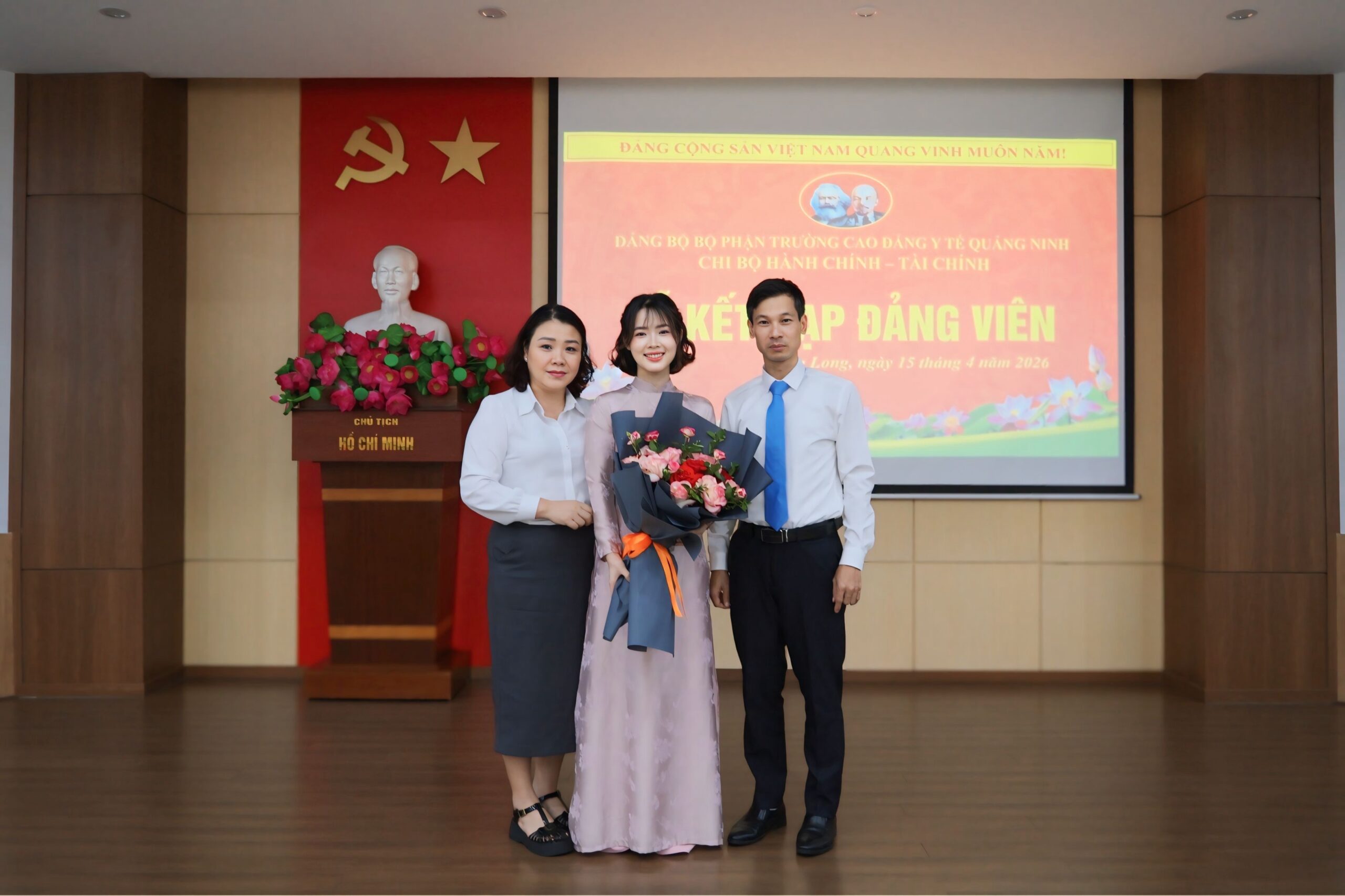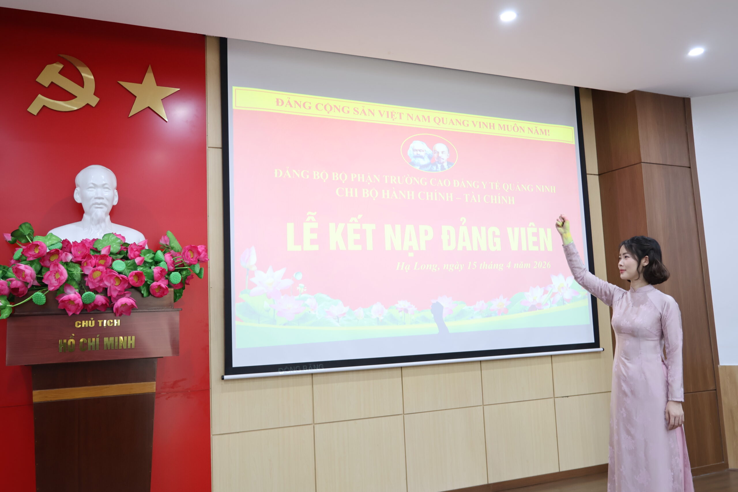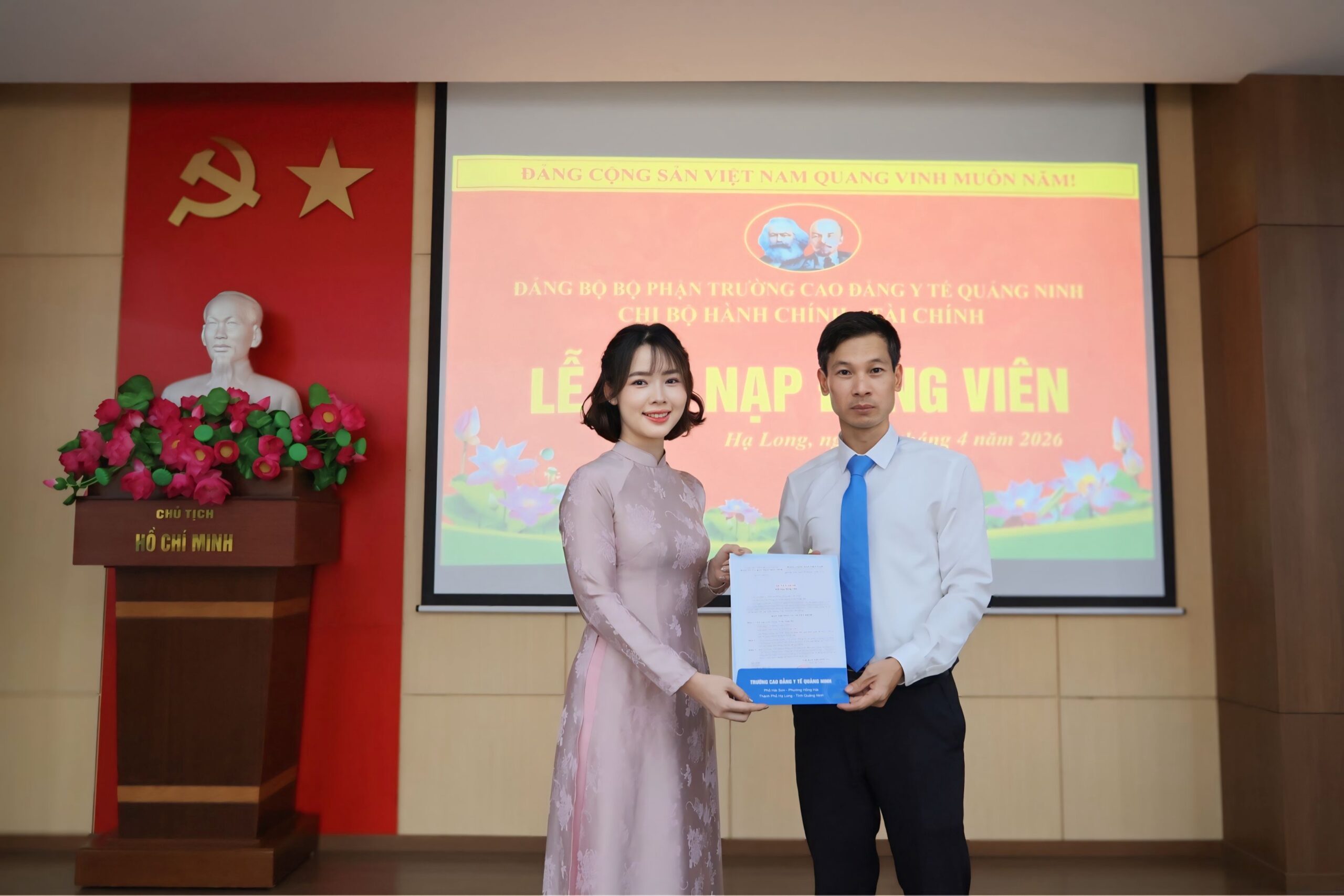 Trong không khí trang nghiêm, Chi bộ Hành chính – Tài chính, Trường Cao đẳng Y tế Quảng Ninh đã long trọng tổ chức Lễ kết nạp Đảng viên mới cho quần chúng ưu tú Trần Nhật Hà. Đây là sự kiện có ý nghĩa quan trọng, đánh dấu bước trưởng thành về nhận thức chính trị, tư tưởng và hành động của đồng chí sau quá trình phấn đấu, rèn luyện không ngừng.