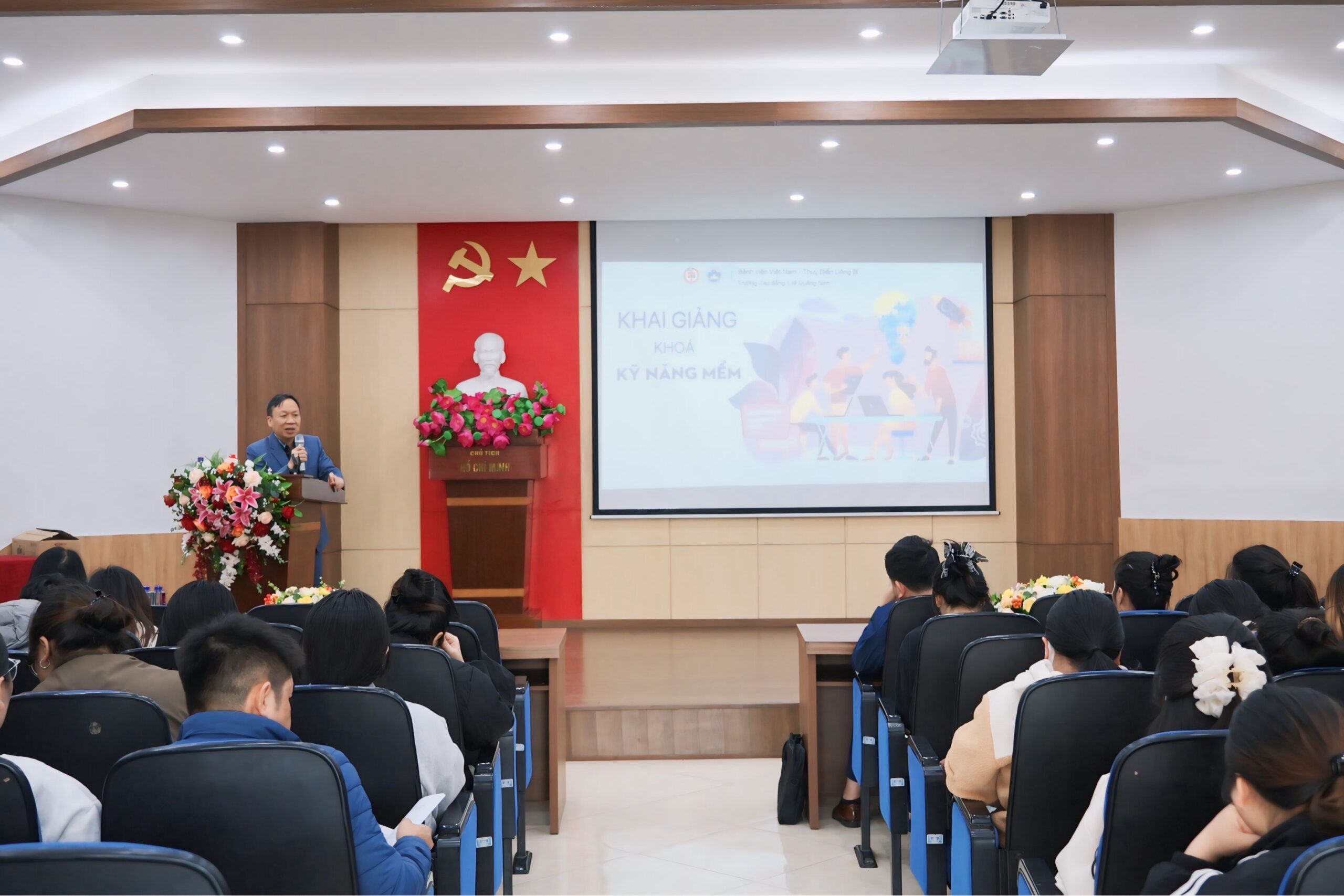 Toàn cảnh buổi khai giảng lớp đào tạo kỹ năng tìm kiếm việc làm, làm việc năm 2025 tại Trường Cao đẳng Y Quảng Ninh.
