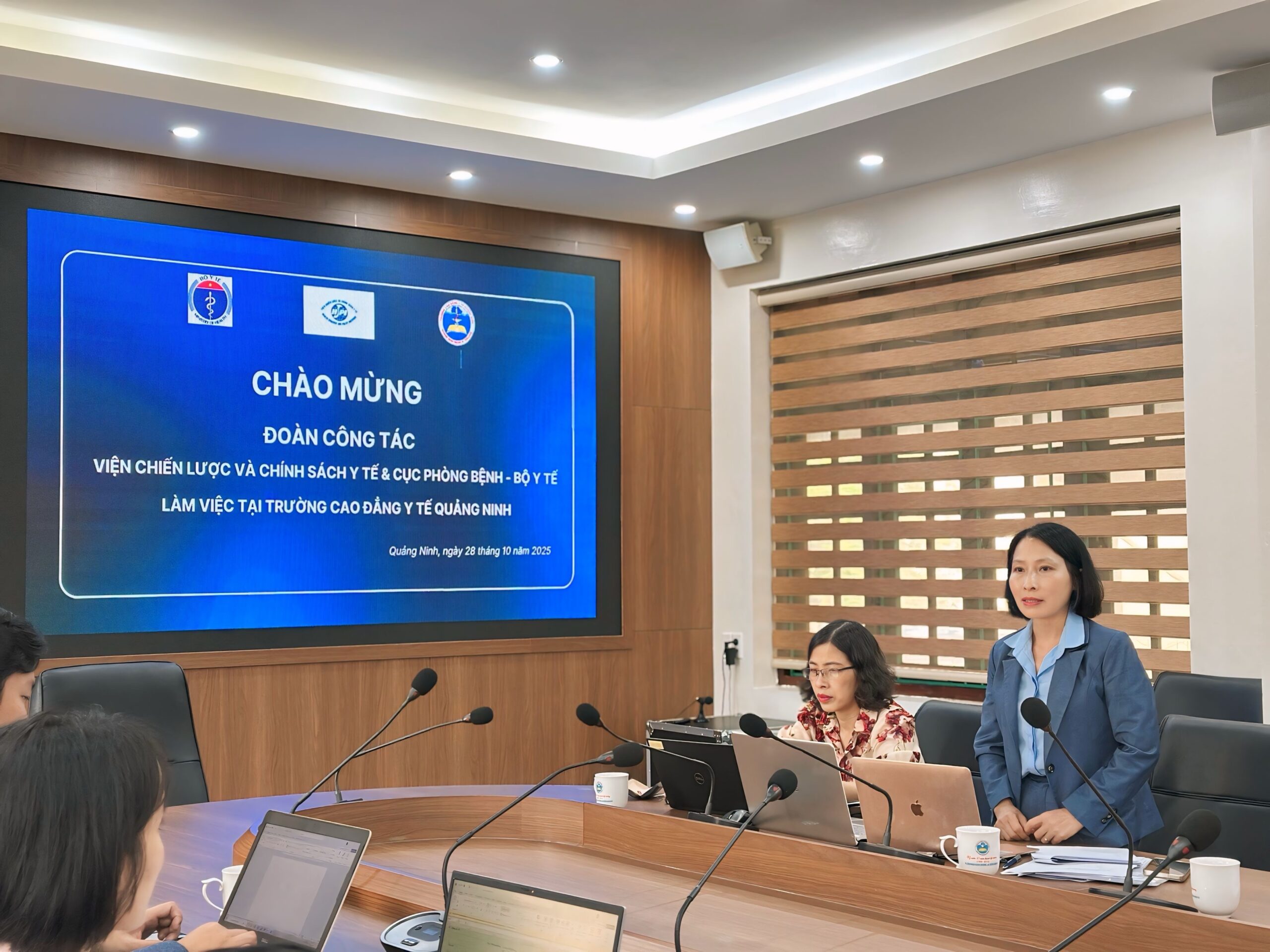 Sáng ngày 28/10/2025, Trường Cao đẳng Y tế Quảng Ninh vinh dự đón tiếp Đoàn công tác của Viện Chiến lược và Chính sách Y tế và Cục Phòng bệnh – Bộ Y tế trong khuôn khổ chương trình “Đánh giá thực trạng và nhu cầu phát triển nhân lực y tế trường học tại các cơ sở giáo dục công lập”.