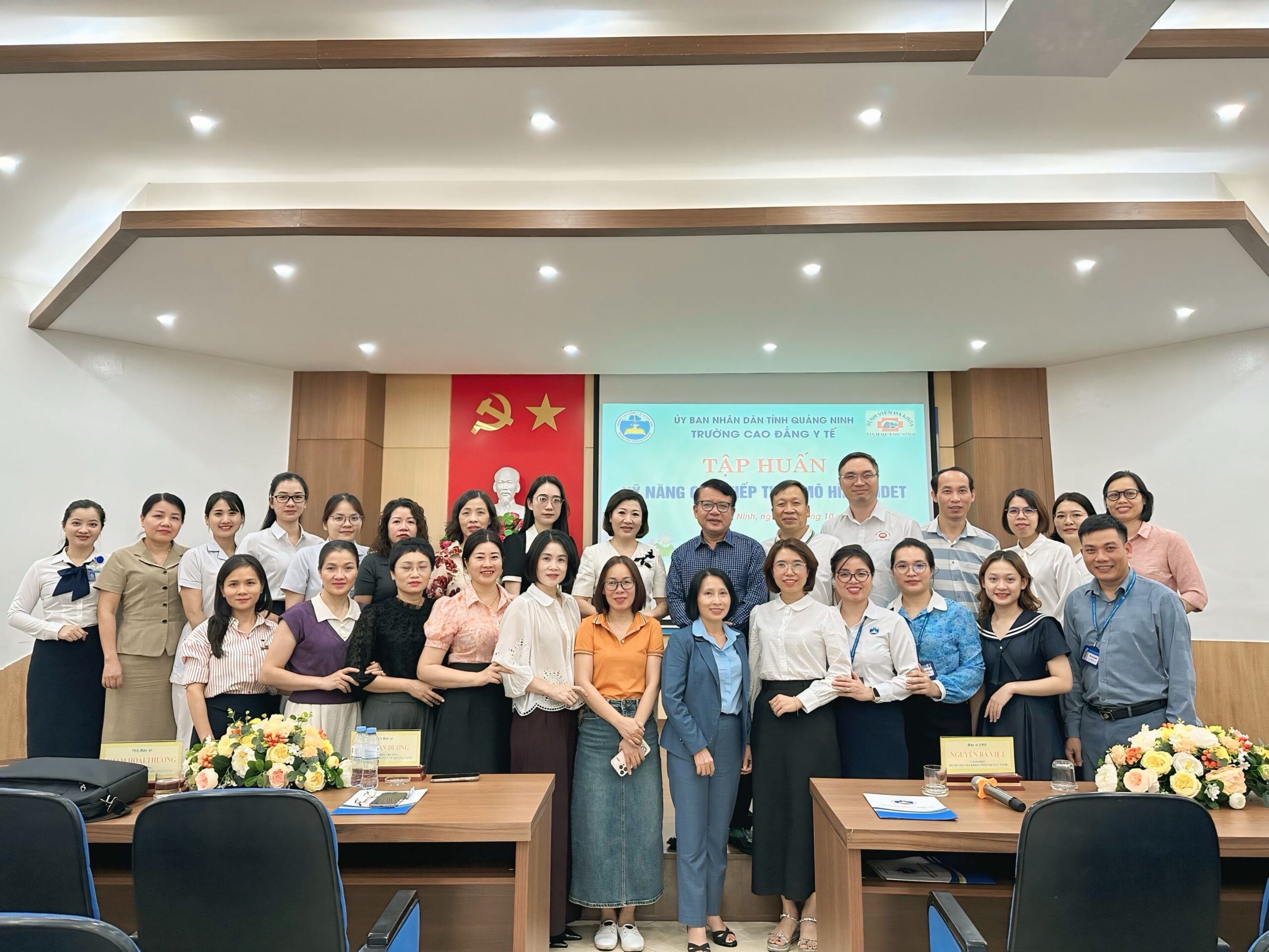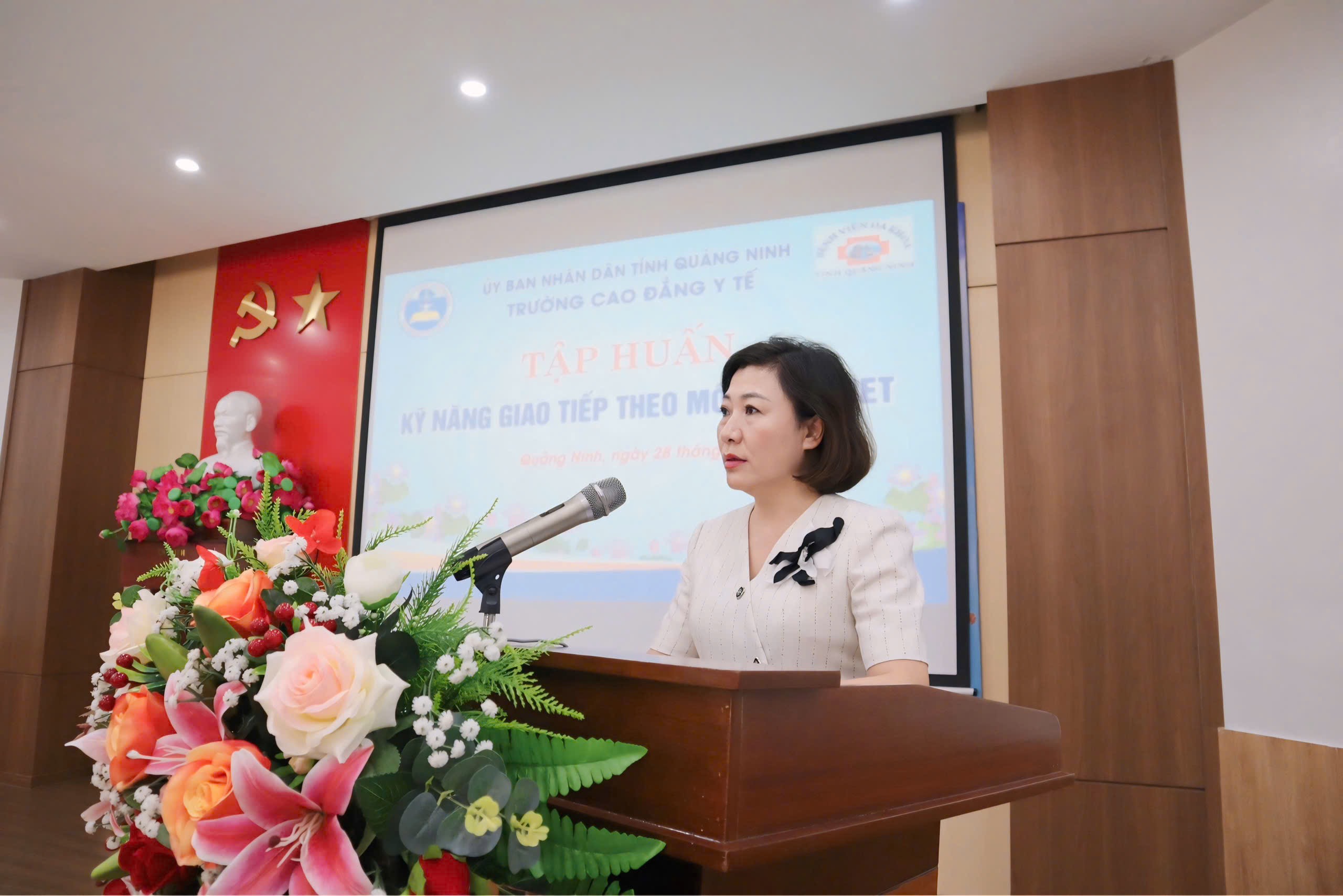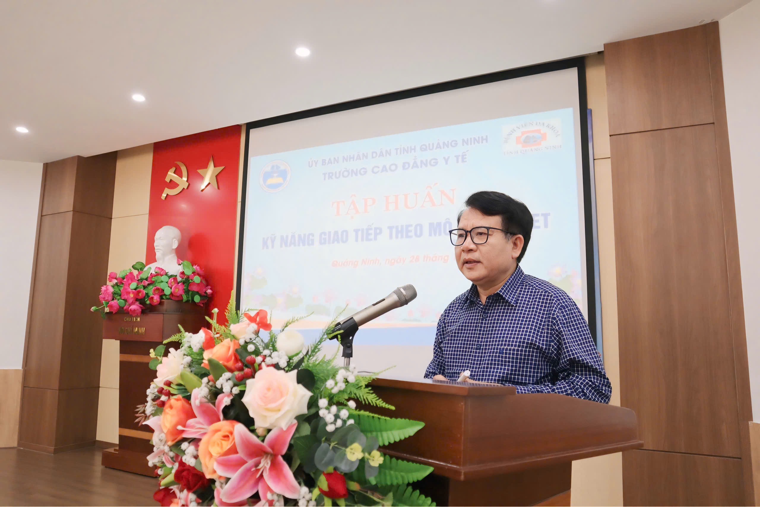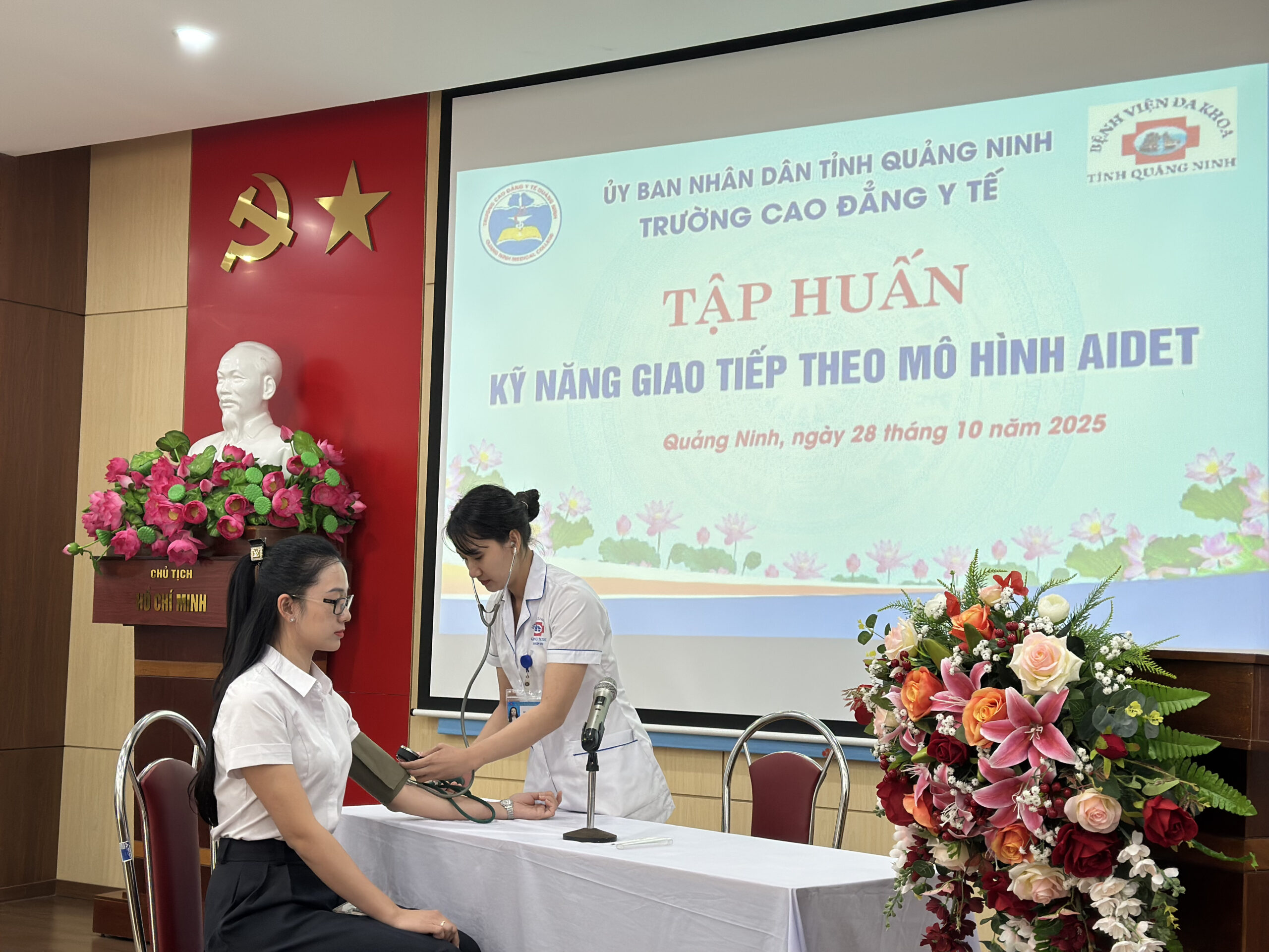 Thực hiện chương trình công tác năm 2025 và hưởng ứng Tuần lễ học tập suốt đời, chiều ngày 28/10/2025, Trường Cao đẳng Y tế Quảng Ninh phối hợp với Bệnh viện Đa khoa tỉnh Quảng Ninh tổ chức buổi tập huấn “Kỹ năng giao tiếp theo mô hình AIDET” dành cho đội ngũ cán bộ, giảng viên và sinh viên Nhà trường.