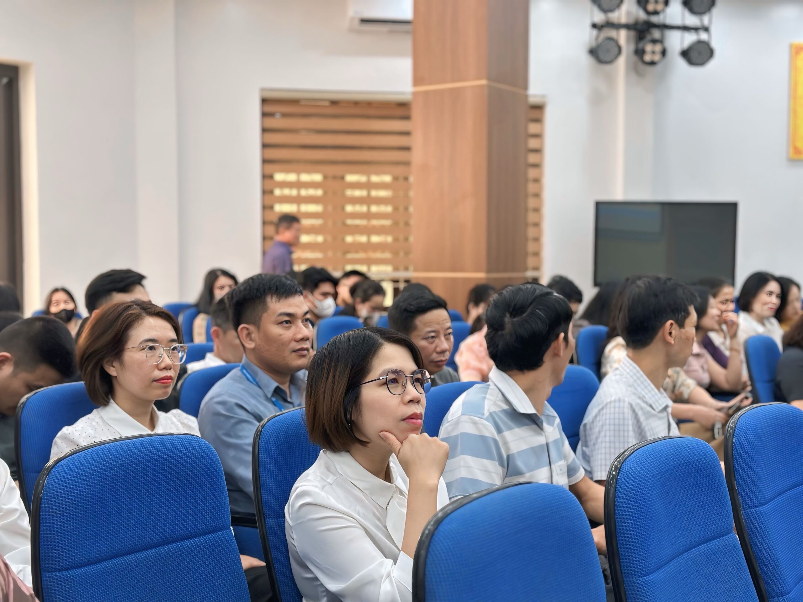 Các thầy cô và sinh viên nhà trường nghiêm túc tham gia tập huấn