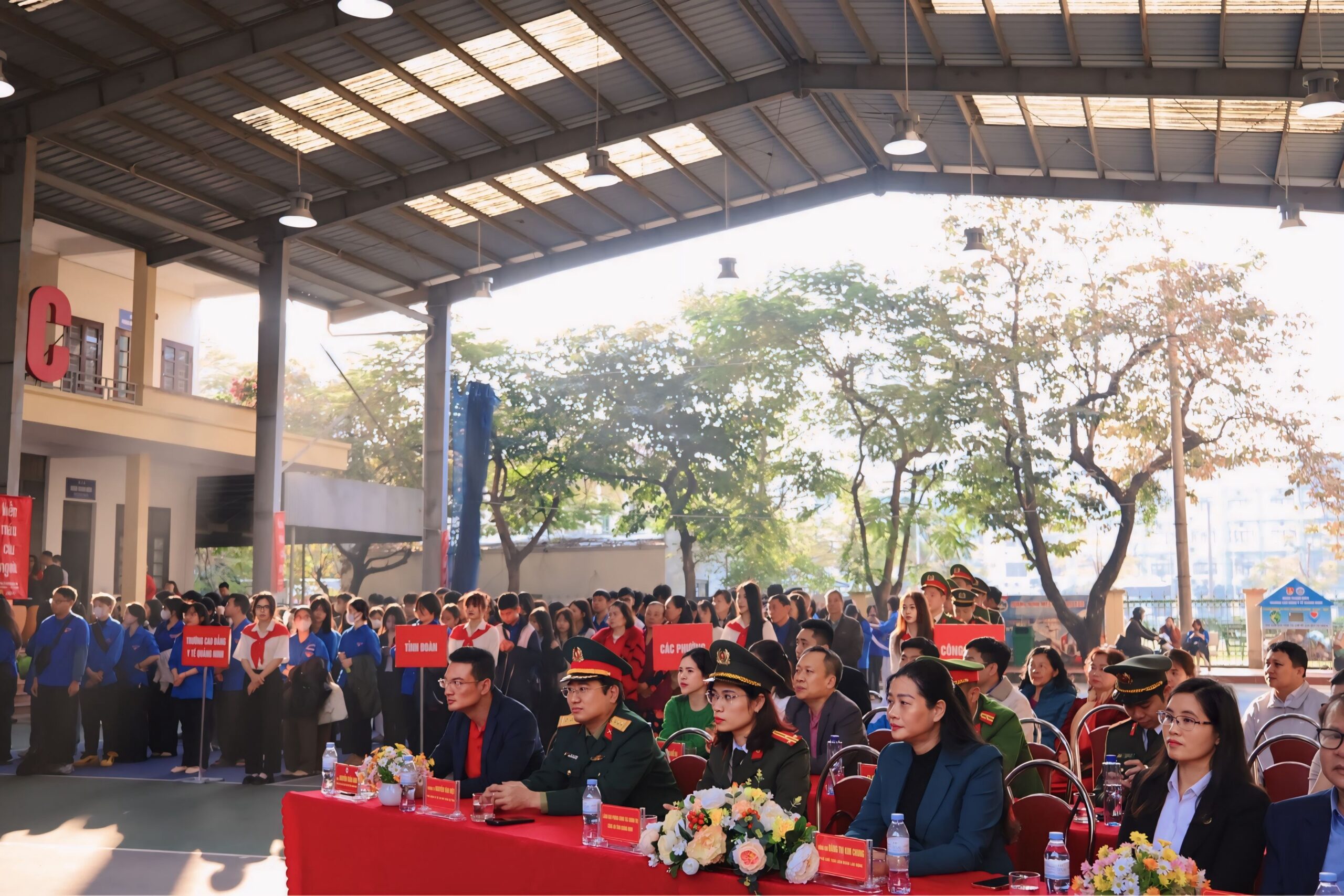 Quang cảnh Lễ phát động Chiến dịch hiến máu tình nguyện dịp Tết Nguyên đán và Lễ hội Xuân hồng năm 2026 tại Trường Cao đẳng Y tế Quảng Ninh.